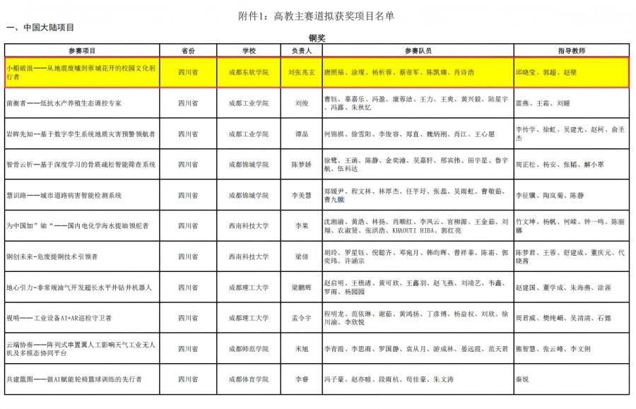 近日,中国国际大学生创新大赛(2025)拟获奖项目名单揭晓。我校参赛团队表现优异,荣获铜奖。