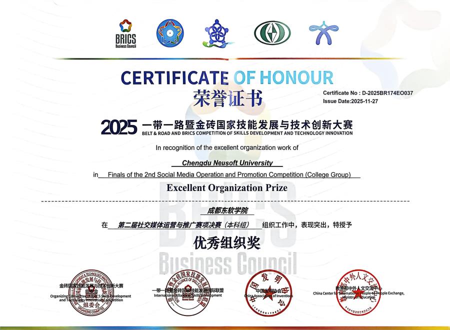 此次获奖不仅是我校在商科应用型人才培养方面持续投入与特色建设的成果体现,更体现了学校在跨学科融合育人方面的实践成效。学校信息与商务管理学院坚持“IT+管理”融合发展的理念,着力构建具有交叉特色的学科专业集群,充分发挥多个专业实验室的平台作用,促进理论教学与企业实践深度融合,培养兼具信息素养与商务管理能力的复合型人才。学校将以此次大赛为契机,持续加强电子商务专业的课程建设、优化教学方法、开展实践训练,为跨境电商产业培养更多具备国际视野和实操能力的复合型人才,为推动区域数字经济发展与金砖国家技能合作贡献力量。