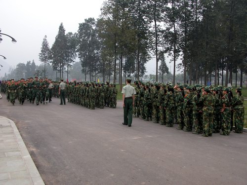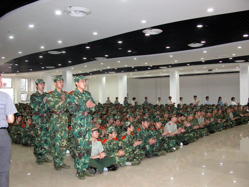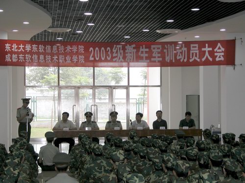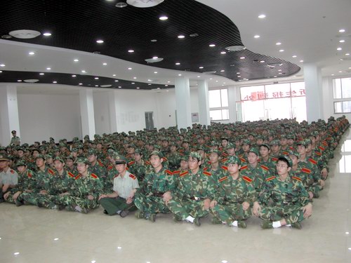 | 2003级新生认真聆听学院领导和教官的教诲。 |