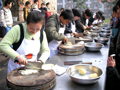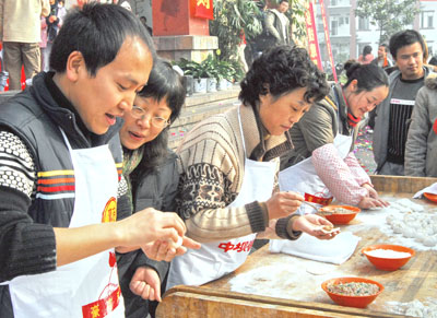 葡萄黄金饼、肉松蛋夹、可爱的马来糕、米老鼠、果糕蛋挞、雪样的龙须酥、漂亮的蝴蝶酥、精致的百花鲍脯、果味金丝沙拉虾……12月21日,成都东软学院食堂外人山人海,美食飘香,由我院后勤保障部和四川师大后勤集团饮食服务中心举办的美食节在这里隆重登场,受到了学院师生们的热捧。 养眼美食佳肴琳琅满目 活动还没开始,食堂门前的展示区和品尝区各种美食佳肴早已经准备就绪。有黄澄澄的葡萄黄金饼、肉松蛋夹,可爱的马来糕、米老鼠、果糕蛋挞,雪样的龙须酥,香喷喷的豆豉带鱼、泡椒豆腐、大刀耳片,漂亮的蝴蝶酥、蓝莓蛋糕、紫菜寿司,精致的百花鲍脯、果味金丝沙拉虾……还没有开始品尝,精美的美食作品就吸引了不少同学驻足观看,让他们大饱眼福。在展区正中,技艺精湛的食堂师傅用泡沫和食材雕刻的名为“吉祥如意”的鲤鱼跳龙门深深的吸引了观众的眼球。其它展台也是琳琅满目,令人眼花缭乱的美食俨然形成了一条美食街。 精彩师生现场大秀厨艺 现场除了香喷喷可口的美食之外,爱好橱艺的老师和同学们还现场秀起了自己的绝活,现的厨艺比赛也吸引大批的观众和“粉丝”。别看老师和同学们在课堂上指点江山、激扬文字的书生气十足,但在厨艺比赛中各个毫不含糊。操菜刀的操菜刀,握擀面杖的握擀面杖、包饺子的包饺子……精彩的技艺赢得了现场观众们的阵阵掌声。 此次活动的活动的相关负责人表示,此次美食节活动得到了全校师生的积极响应,举办的很成功。美食节的举办旨在倡导健康饮食态度,让同学们在课余学习和体会到中国博大精深的美食文化,增加同学们的见识,丰富我们的校园文化生活。 | |||||||||||