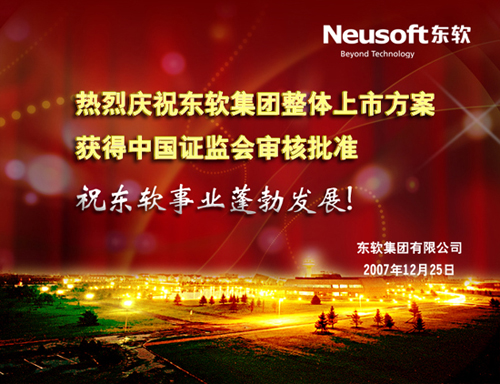 热烈庆祝东软集团整体上市方案获得中国证监会审核批准