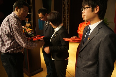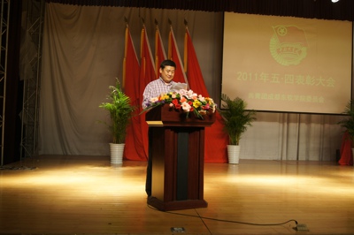 大会在全场老师和同学合唱《国歌》之后拉开了帷幕,2011年5.4表彰大会正式开始。院团委书记蒋利明老师宣读了《学院关于表彰10-11年度先进团支部、优秀团干部、优秀团员的决定》。他希望收到表彰的团员、团干部和基层团组织奋勇争先、再接再厉,把取得的成绩做为新的起点,不断取得新成绩。院团委号召全院广大团员青年树立正确的人生观、世界观;树立感恩意识、勇于承担个人责任;坚持学习、创建良好的校风学风,为学院发展、改革、稳定贡献自己的青春、智慧和力量。