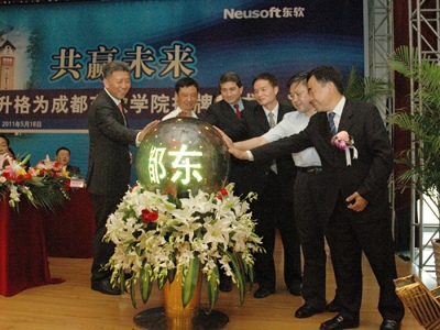 在此次仪式上,四川省教育厅涂文涛厅长宣读了四川省教育厅文件,标志着成都东软学院正式成为本科院校。成都东软学院原名“成都东软信息技术职业学院”,由中国最大的IT解决方案与服务供应商东软集团联合亿达集团于2002年投资成立,是国家紧缺型(信息类)人才培养基地,国家火炬计划成都数字娱乐产业人才培训基地,国家数字媒体技术产业化人才培训基地和中国软件名城(成都)人才培养基地。2011年4月,成都东软学院以其优质的教育资源和创新的教育模式,成功获得教育部批准,由专科院校升格为全日制本科高等院校。此举将使更多莘莘学子有机会接受系统化、综合性的高等教育,成为“国际化、实用化、个性化”的IT人才。