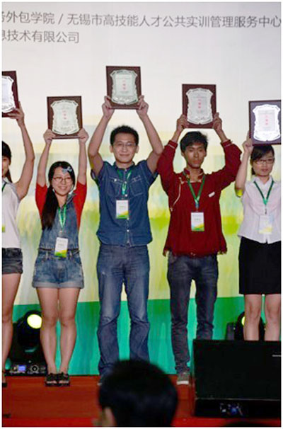 8月20日至21日,由中国教育部、中国商务部和无锡市人民政府共同举办的第四届中国大学生服务外包创新创业大赛决赛在无锡国际博览中心落下帷幕。学院计算机科学与技术系“移动创新俱乐部”的五位学生王迪、杨皓棱、王树正、刘云龙和韩哲林在指导教师仲宝才的带领下开发的手机游戏“点灯”进入决赛,经过激烈的答辩,获得“自主命题组”全国二等奖。
