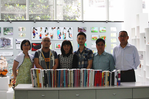 5月20日,在这一个充满爱的日子里,为感谢母校培养、回馈母校,学院计科系06级毕业生王振宇和07级毕业生范桥为母校捐赠了百余册艺术类图书,学院院长助理、教务部部长康桂花,计科系主任杨瑞良,计科系党总支副书记贾琪、学院图书馆馆长助理罗蓉代表学院接受了馈赠。
