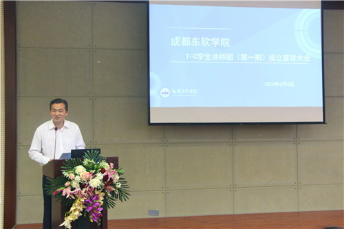 6月4日,学院第一期T-C学生讲师团成立宣讲大会在学院国际报告厅举行。学院党委副书记张宪民,院长助理、教务部部长康桂花及学院主要系部相关领导参加了此次活动。