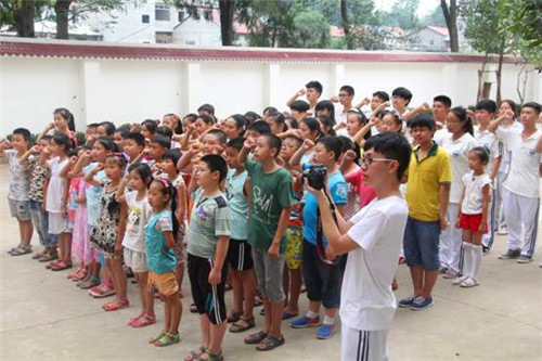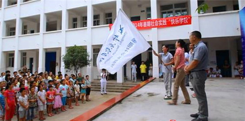 学院暑期社会实践队队员曾畅代表学院志愿者发言,同时东软志愿者董婉晨带领在场全体队员进行出征宣誓。随后中共简阳市委常委、市总工会主席顾晓玲为成都东软学院暑期社会实践队授旗。资阳市关工委秘书长尹英宣布资阳市2014年“快乐学校”暑期社会实践活动正式启动。
