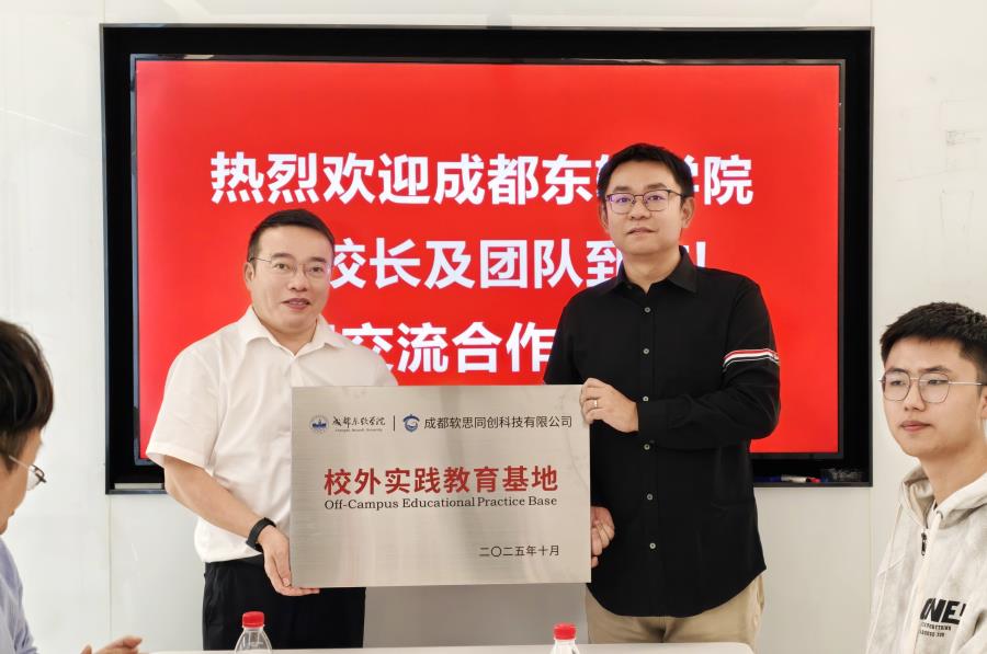 为进一步深化产教融合,精准对接企业用人需求,构建校企协同育人新格局,近日,我校赴成都软思同创科技有限公司走访调研并举行“校外实践教育基地”揭牌仪式。学校副校长张兵、招生就业工作部副部长黄杰、智能科学与工程学院副院长陈建、质量部老师胡佳菁与成都软思同创科技有限公司创始人、学校校友林青松及联合创始人苏禾予开展座谈交流。