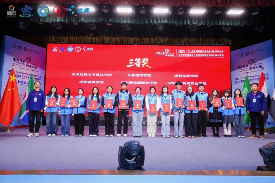 近日,2025“一带一路”暨金砖国家技能发展与技术创新大赛智能财务管理及大数据应用技能赛项全国总决赛圆满落幕。我校信息与商务管理学院学生团队表现优异,凭借扎实的专业技能与出色的团队协作能力脱颖而出,荣获全国三等奖。