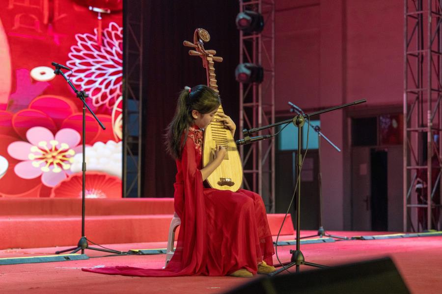 比赛间隙,精彩的个人表演为晚会增添了别样色彩。琵琶独奏《送我一支玫瑰花》,指尖轮转,音符如花瓣绽放;推拉吟揉,乐韵似香气流转。