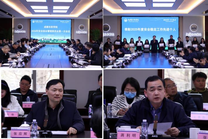 近日,成都东软学院召开2026年安全综合管理委员会第一次会议。学校校长张应辉,党委书记赖廷谦,副校长张兵、副校长陈旭辉、副校长蒋利明出席会议,学校各部门、各二级学院负责人参加会议,会议由副校长蒋利明主持。