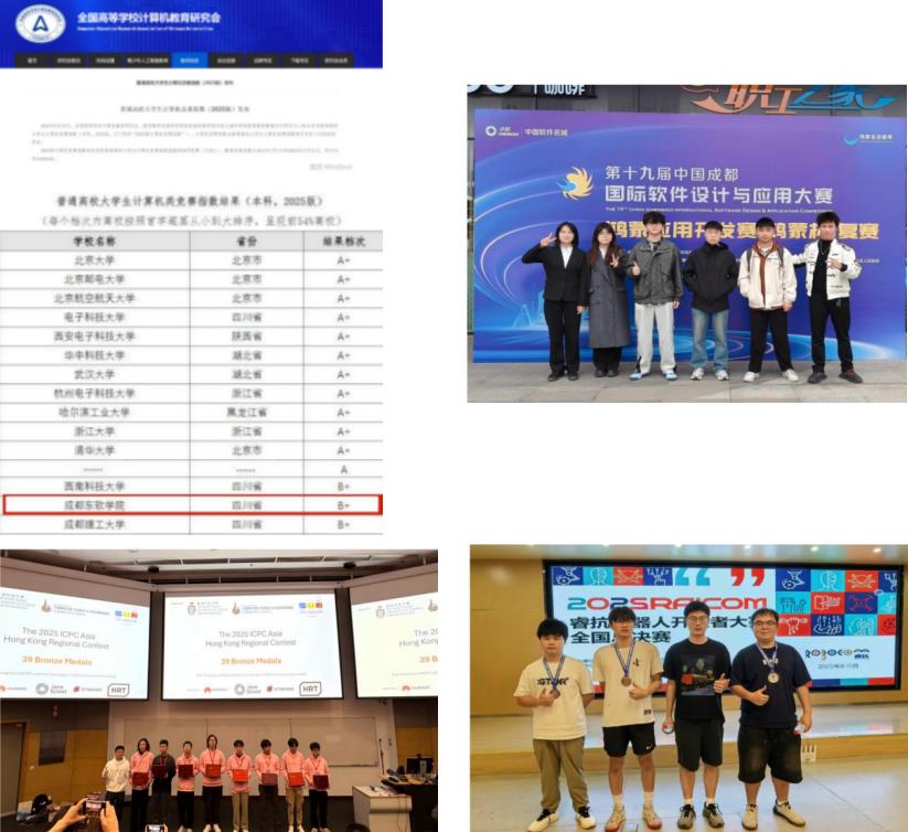 近日,四川省教育厅公布了2025年省级本科高校大学生竞赛项目获奖名单,成都东软学院学子凭借扎实的专业能力、创新思维和出色的团队协作,实现获奖总数和竞赛覆盖面的历史新高,竞赛获奖质量稳居前列,充分彰显了学校深耕应用型创新人才培养的显著成效。