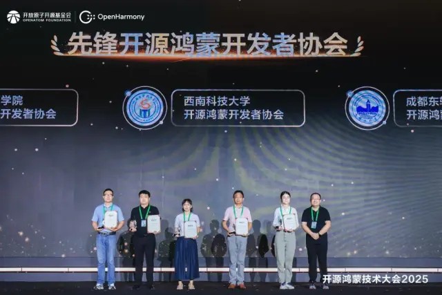 与华为的深度合作堪称典范。除了此次获奖项目,学校教师团队在国产操作系统领域同样表现突出:深耕开源鸿蒙教育四年,教师团队主导的《基于HarmonyOS的移动应用开发课程教学改革》项目,曾斩获首期“国产软件进课堂”优秀教学团队金奖;计算机与软件学院副院长仲宝才获评“鸿蒙生态人才建设春雨奖”,代永芳老师获评OpenHarmony“先锋讲师”;学校被OpenHarmony项目群技术指导委员会授予 “2025年度先锋开源鸿蒙开发者协会”称号。